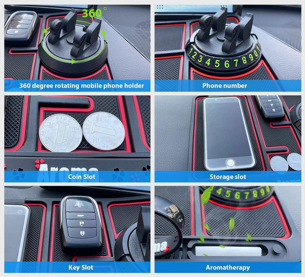 Keep things Organized: Transform your car rides with a mat that holds everything - from phones to sunglasses, ensuring nothing is ever lost again.